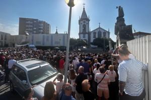 记者表示,当地人和球迷一起在教堂外伫立,许多人穿着球衣,外面挂着葡萄牙国旗。教堂的另一边时不时传来庄严的掌声,记者推测大概是亲密亲属聚集的地方。
